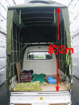引越し用の荷台の高さが2m超。大型の冷蔵庫・洋服ダンス・ベッドのマットレスも立てたまま積めます。ワンルームサイズから少し多めの単身引越しまでお任せください。